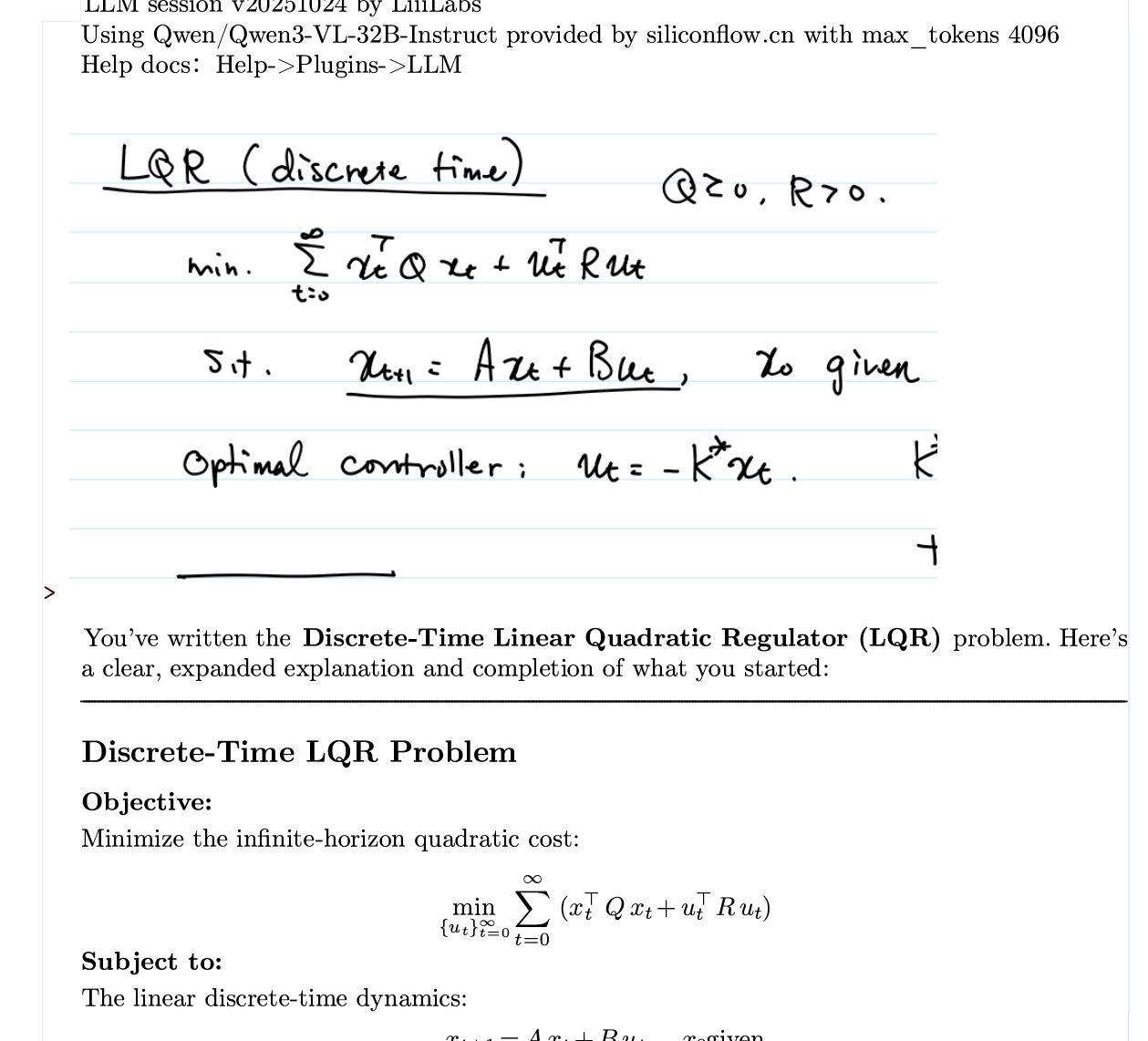 - AI 自动排版,手写内容整理:Liii STEM 内置 AI 不仅支持纯文本对话,还可以使用数学公式,表格,甚至是手写拍照的图片作为对话。AI 生成的内容会直接排版在 Liii STEM 内部,一切均可编辑!