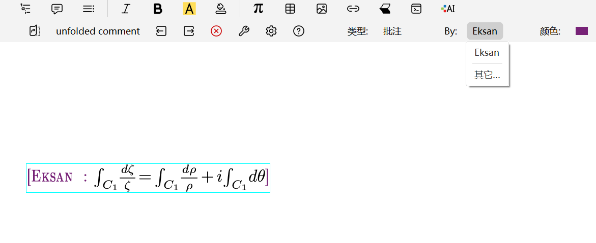 增加宏包→实用→批注。可以通过快捷键Ctrl+/插入批注。在批注环境下,可以在焦点(当前环境)工具栏里更改批注者。