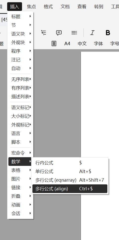 新增 alignment equation 的中文翻译 为 "多行公式 (align)"