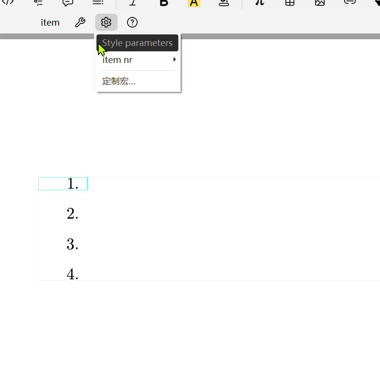 选中任意有序列表,可以在焦点(当前环境)工具栏中的