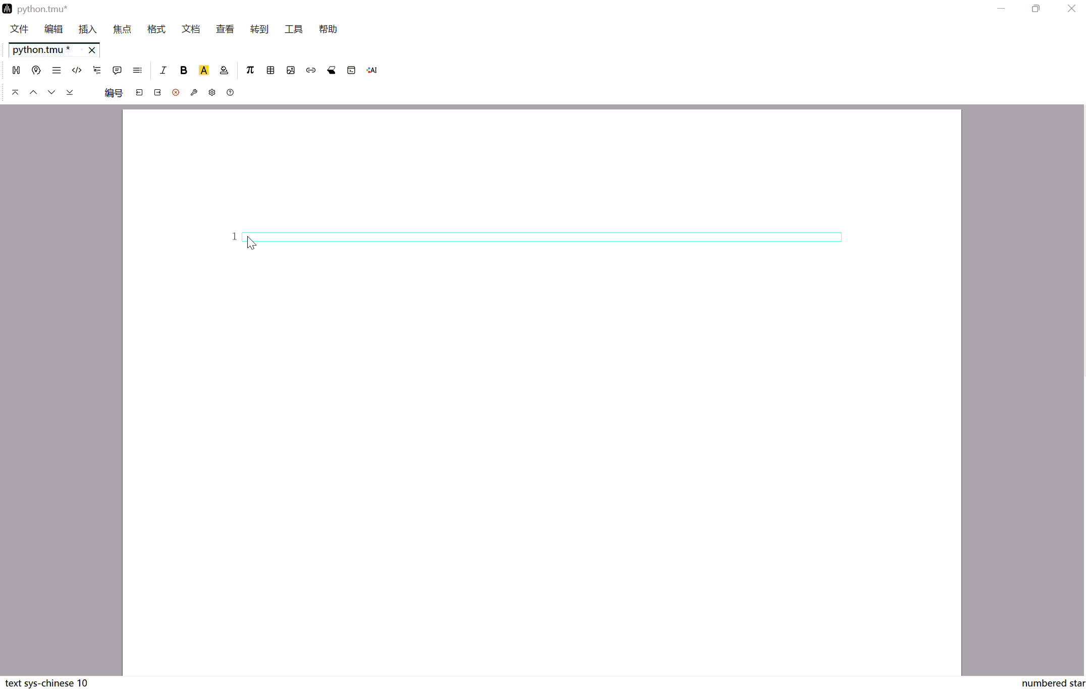下图中的焦点(当前环境)工具栏和光标表明我们正处在 verbatim code 环境中。