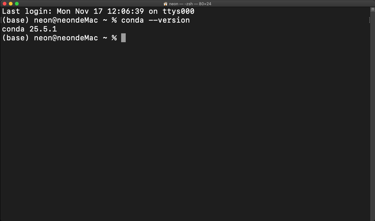 输入“conda --version”并查看输出。如果您的输出类似下图,则说明 Anaconda 已被成功安装在您的设备中。