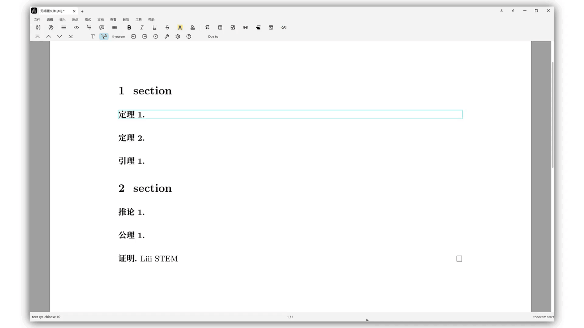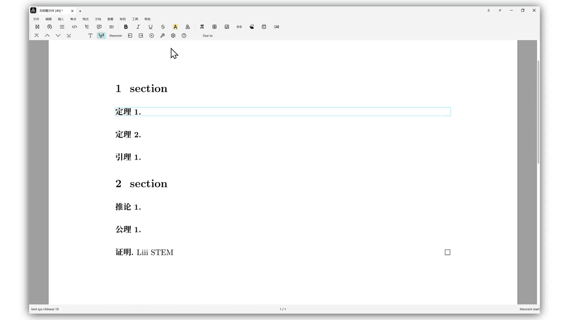语义块是文本模式下的功能,用于为您文章中的定理(Theorem)、引理(Lemma)、推论(Corollary)、命题(Proposition)以及证明(Proof)等内容提供专门的写作环境。