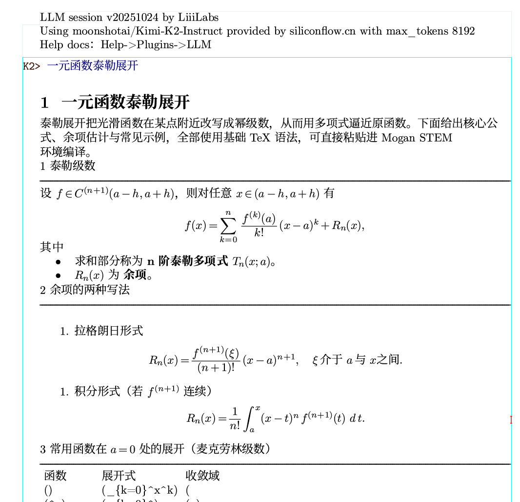 Liii STEM 还有内置大模型,其输出的全部内容也会自动排版到文档中。