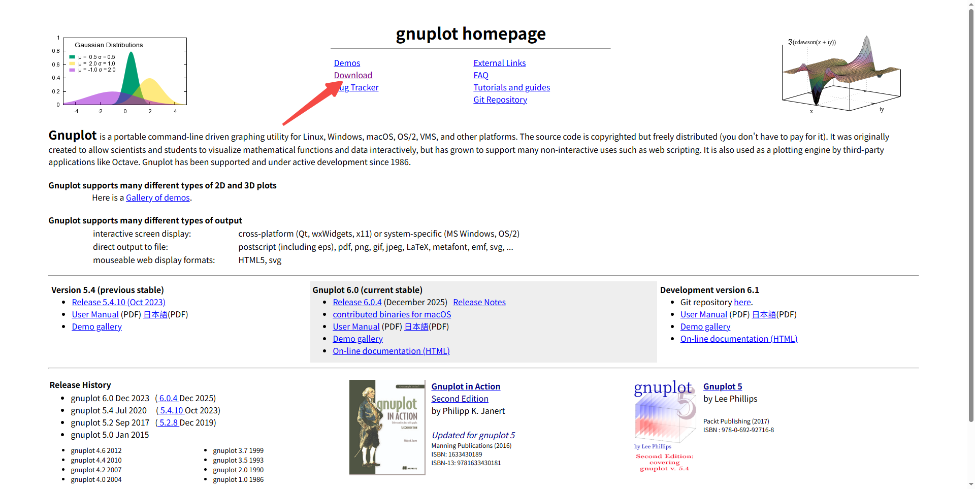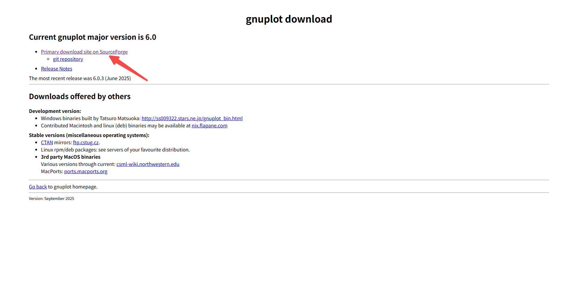 - 进入 Gnuplot 官方网站,选择 Download 进入下载页面。