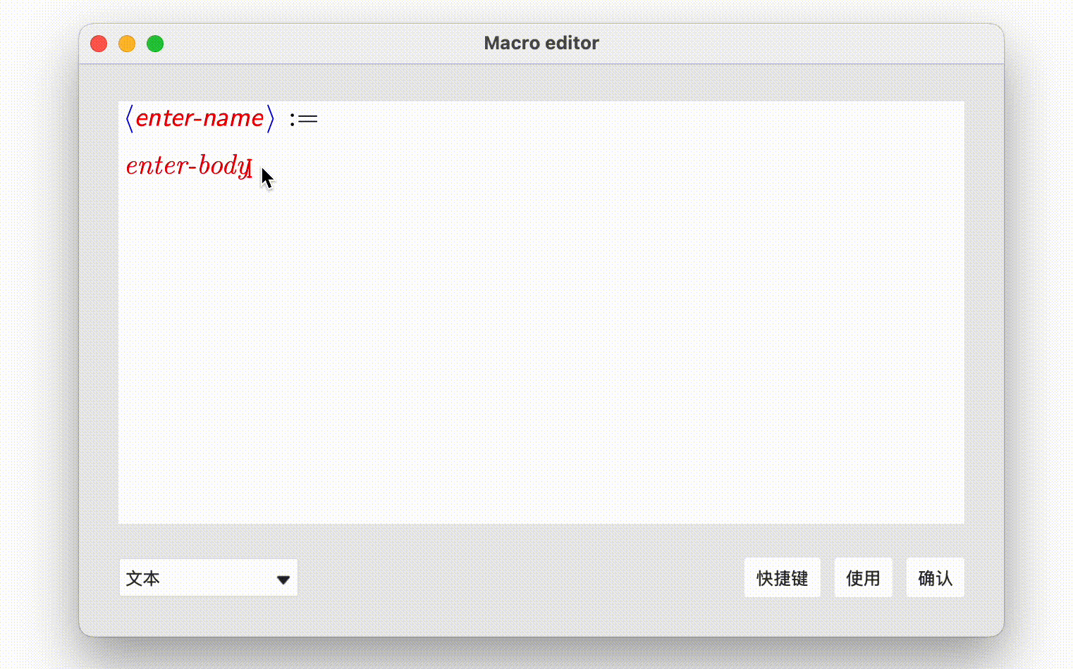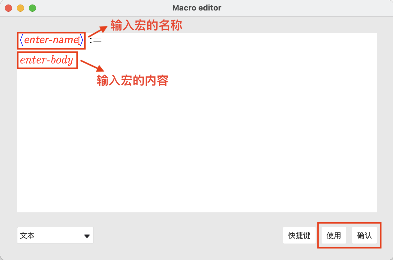 在 enter-body 部分,输入宏的 内容 。