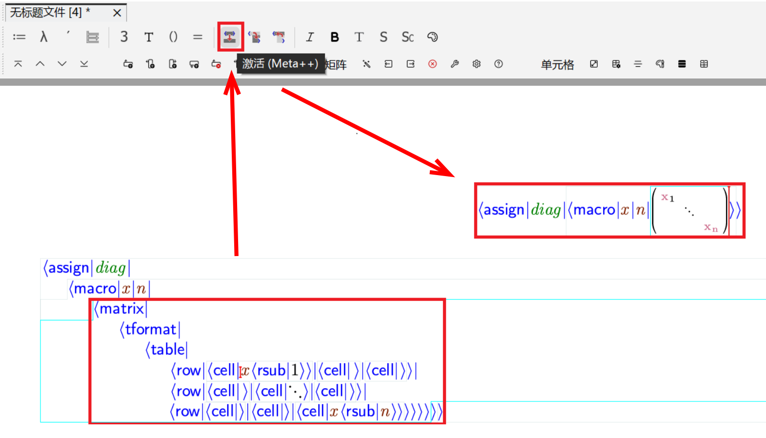 \+matrix后点击模式工具栏中的激活,此时可以展开宏等结构方便您快速编辑。