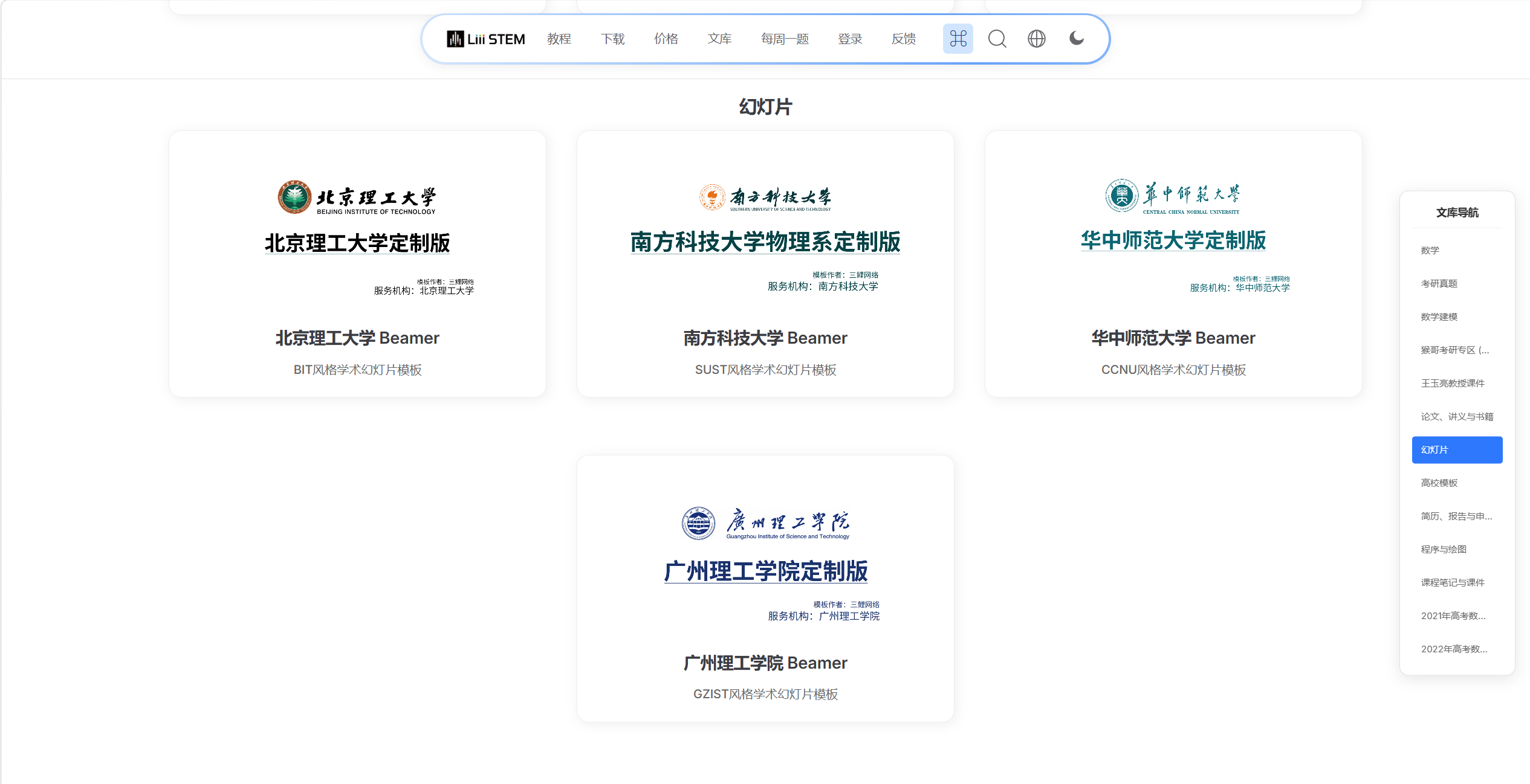 进入官网,点击文库,下滑到幻灯片处,点击模版后,再点击下载即可获取。(包含的模板如下图所示)