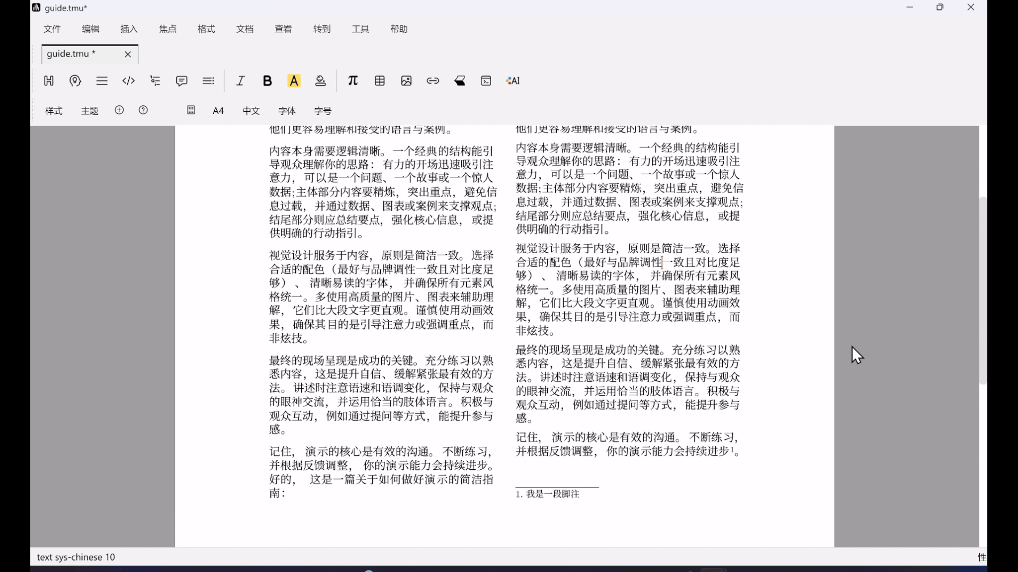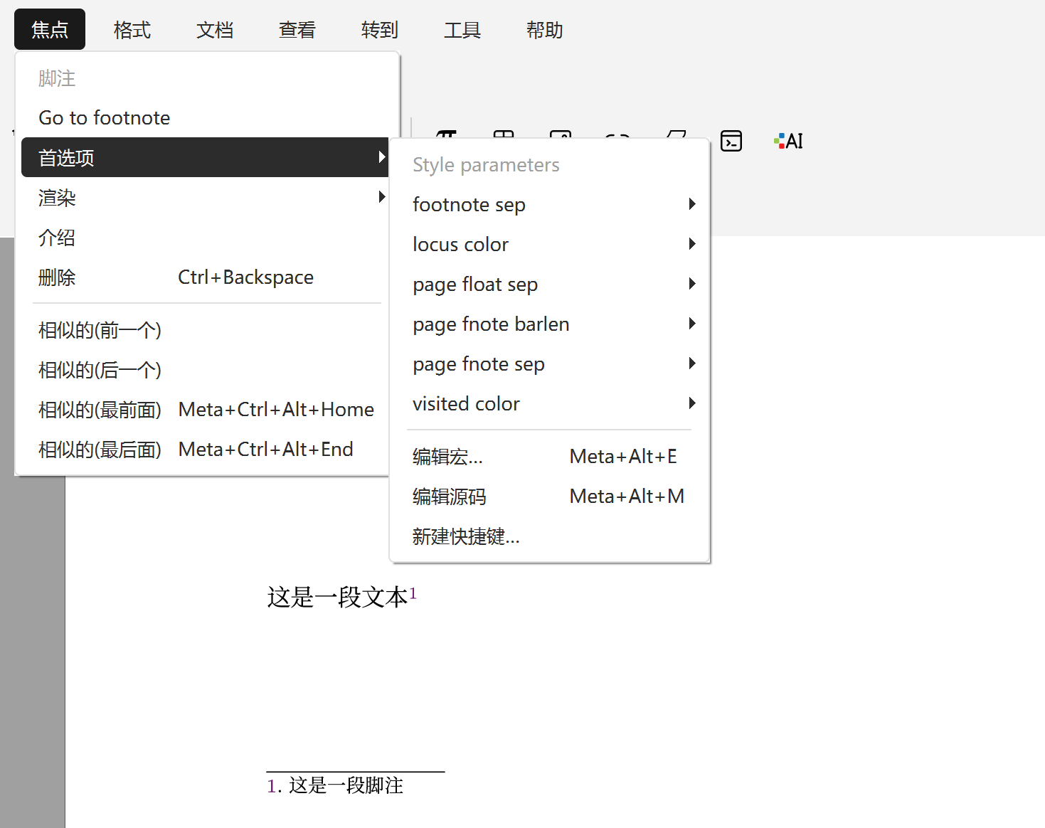 插入脚注后,它们会被编号,您可以通过点击编号在正文和脚注之间跳转。如果想要修改脚注的样式,请将光标移至编号后,在菜单栏依次点击 焦点
