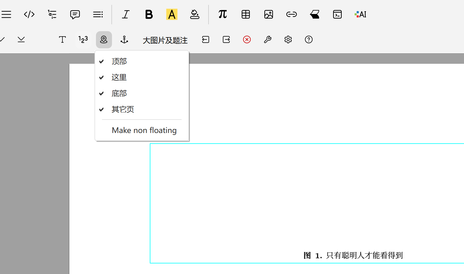 。以这种方式创建的宽脚注和浮动对象总是出现在顶部或底部。