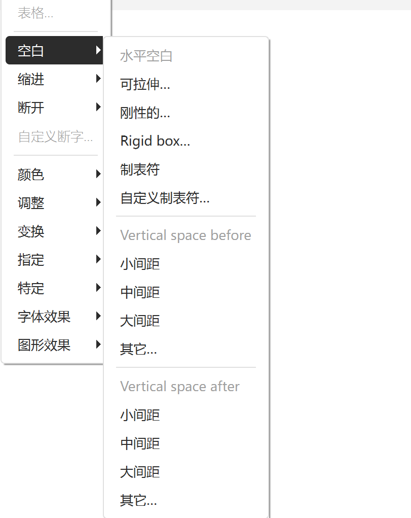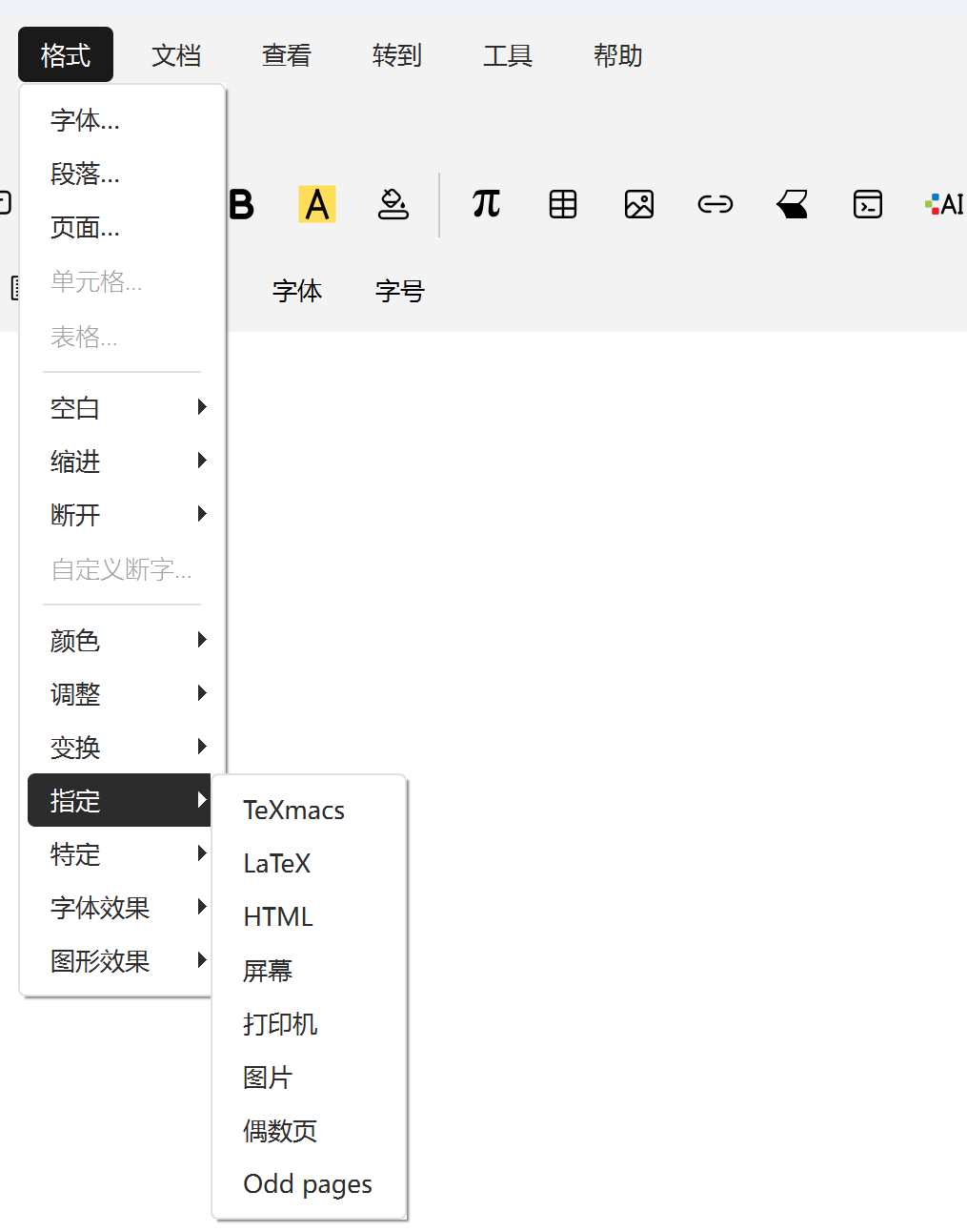 - LaTeX:仅在导出为 LaTeX 时显示内容。