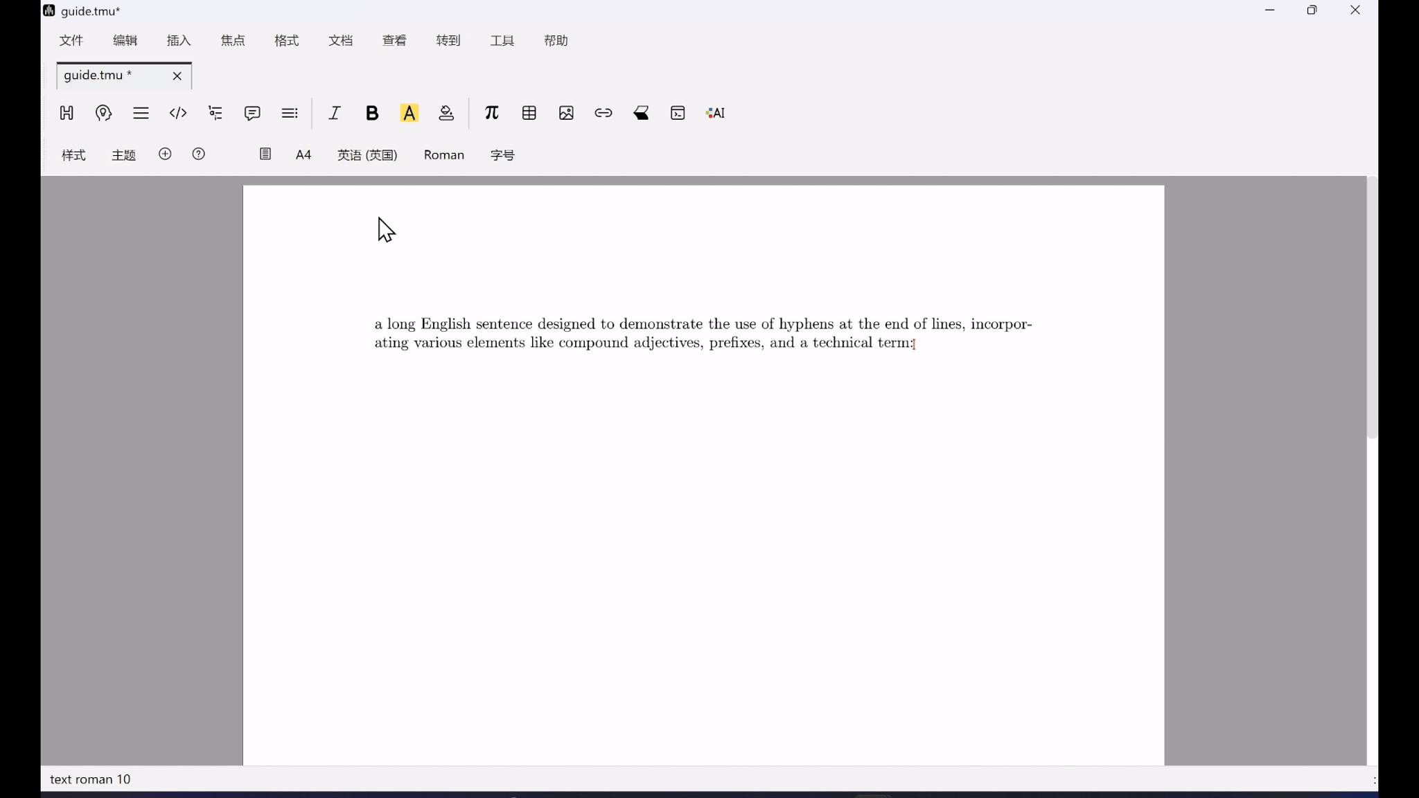 如果您希望手动修改当前某个单词的连字符,可以使用鼠标选择单词,点击 格式