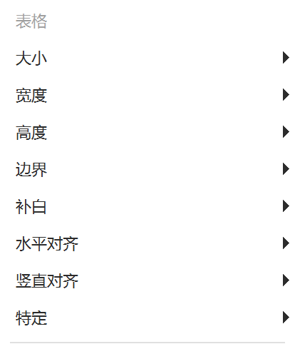 在焦点(当前环境)工具栏点击 Table properties→表格属性 打开表格属性