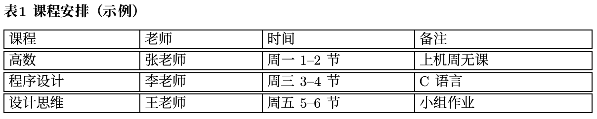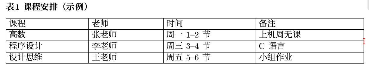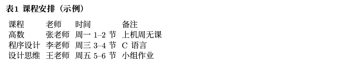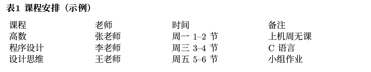 编号表:带有编号和题注,大表格独占一行,小表格 可以并排排列。