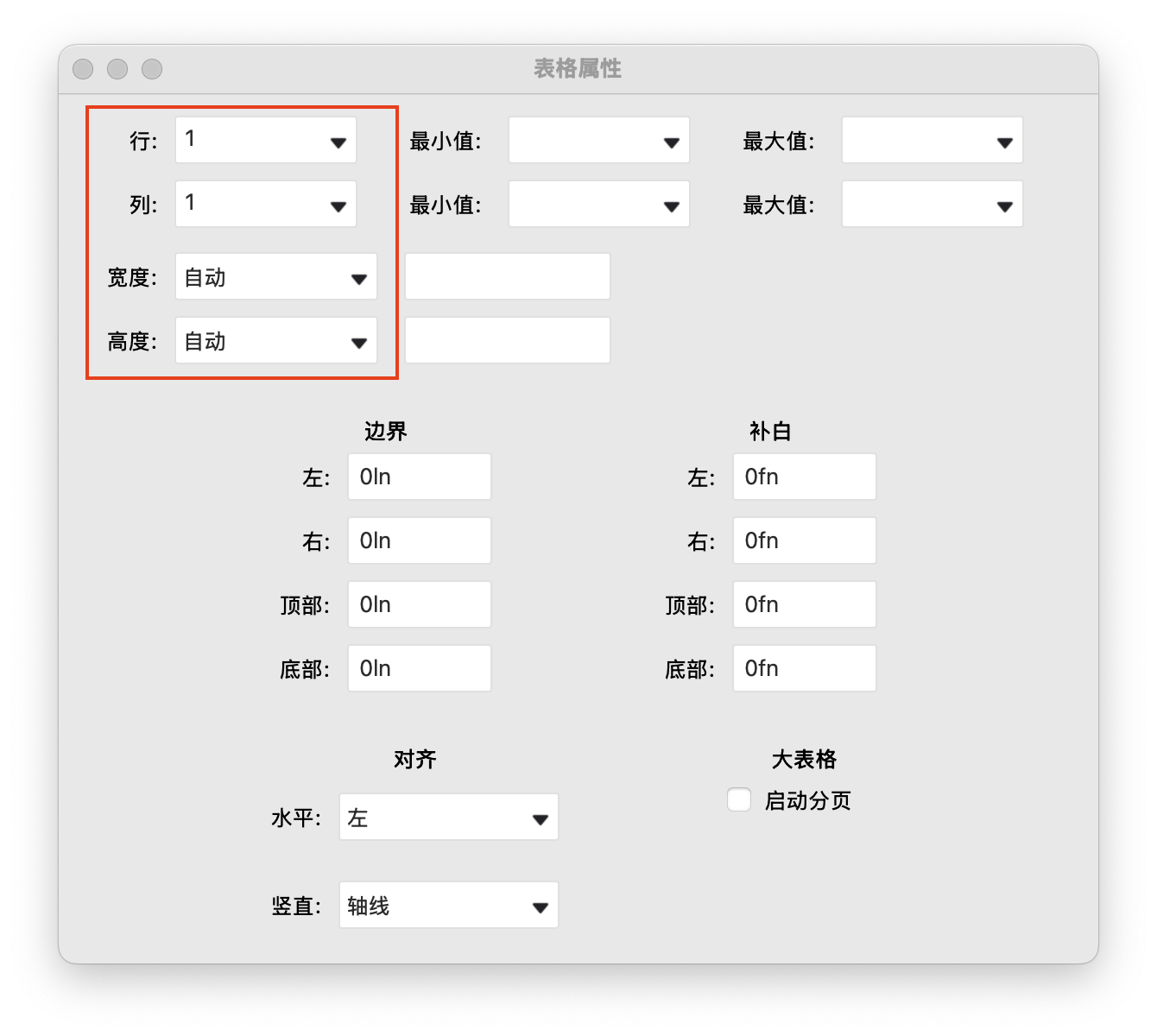 此外,还可为表格声明最小/最大行列数 ,便于制作自定义表格宏。